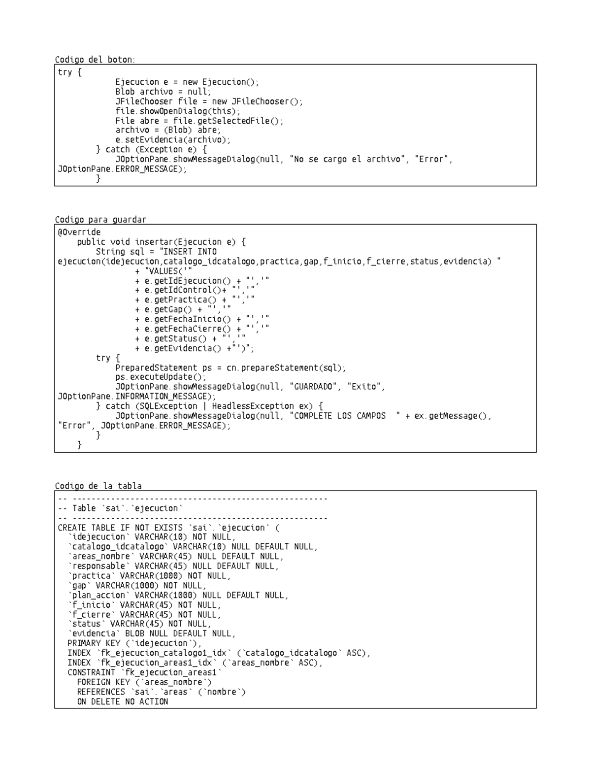 Codigo para insertar un archo de excel a la base de datos Codigo del boton try { Ejecucion e