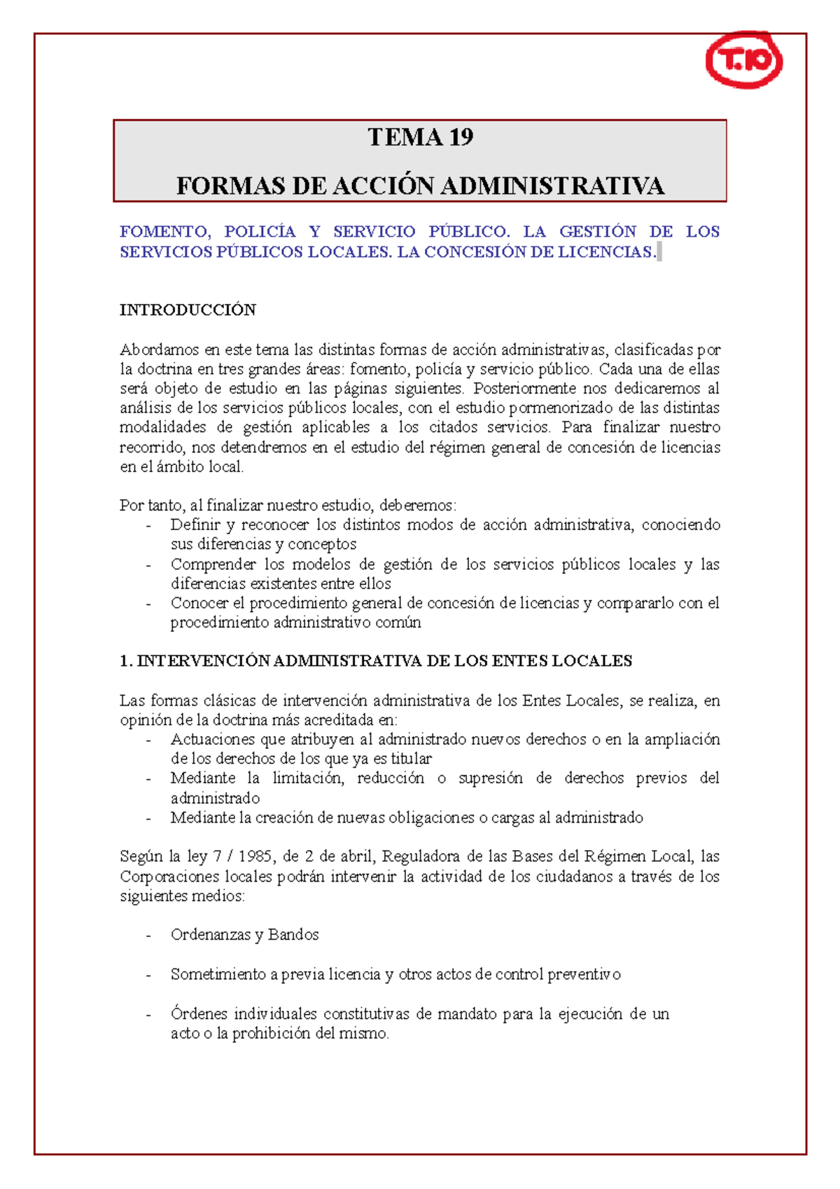 TEMA 12 Formas DE Accion Administrativa 1 ADMINISTRATIVO AYUNTAMIENTO