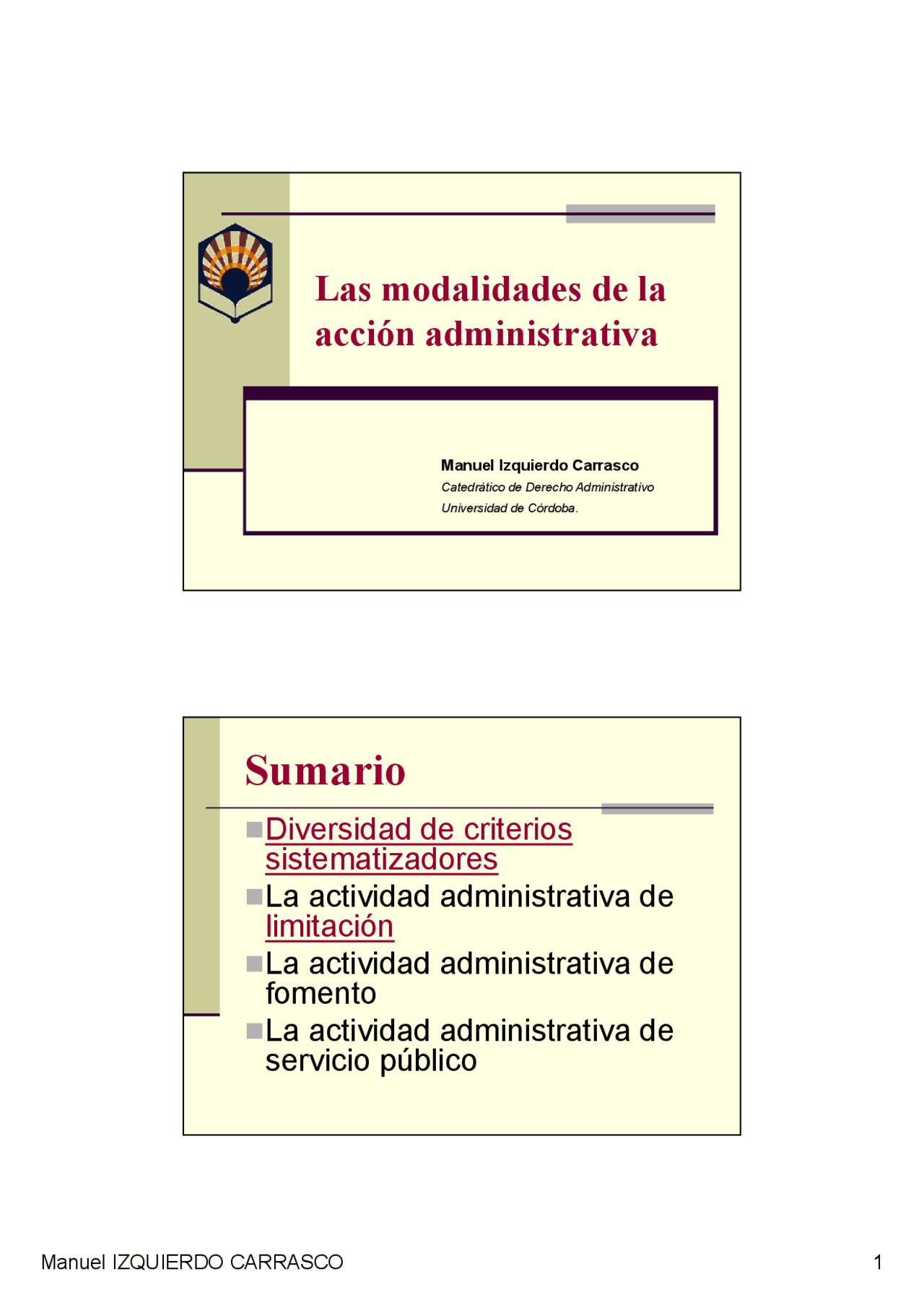 Las modalides de la acción administrativa Ejercicios de Derecho