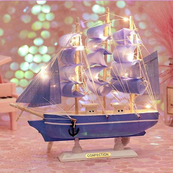 Modelo de velero Barco de Vela Lámpara de Noche Estilo mediterráneo Rosa Raya Azul Decoración de