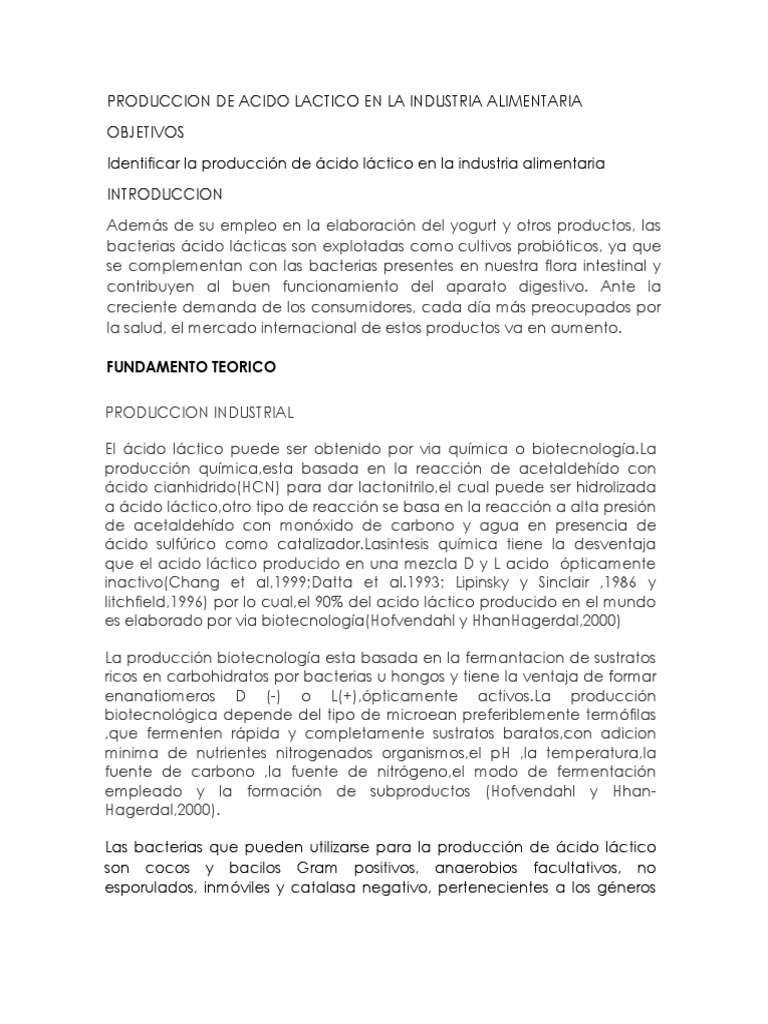 Produccion de Acido Lactico en La Industria Alimentaria PDF Yogur