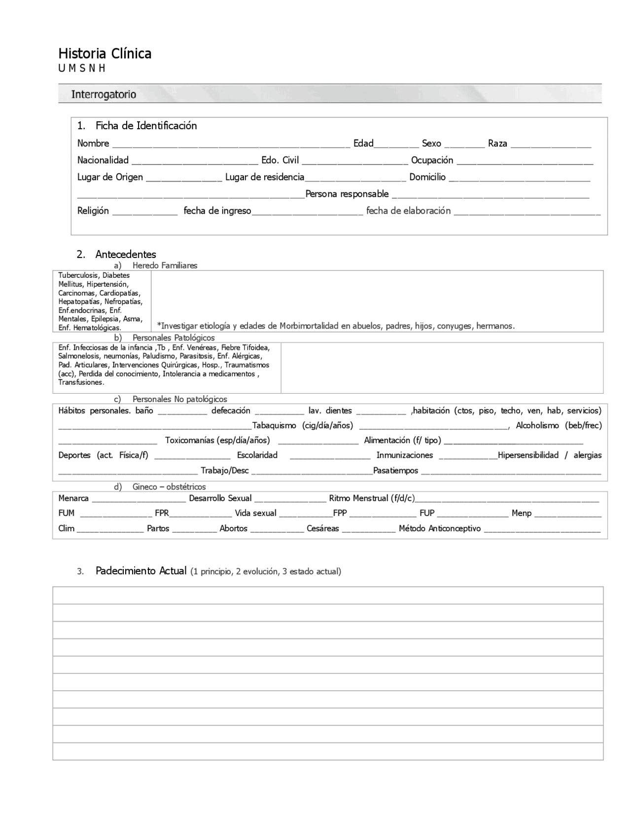Historia clínica. La historia clínica es el documento médico legal en el cual se registran todos los datos intrínsecos en la relación médico - paciente. En este archivo se expresan cronológicamente los sucesos en el cual el paciente inicia el padecimiento de la enfermedad y condiciones personales del mismo, desde hábitos saludables.
