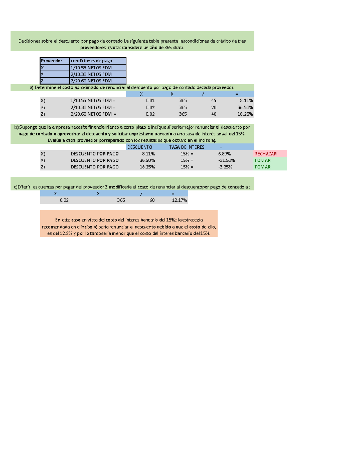 Ejercicio de cuentas por cobrar y por pagar Proveedor condiciones de