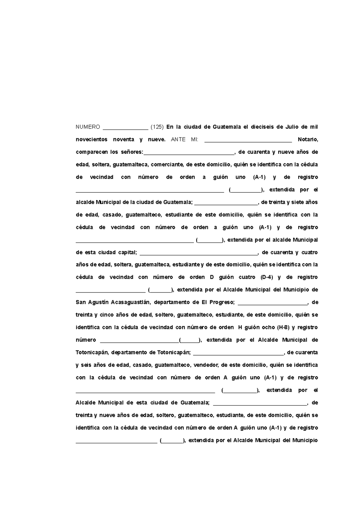 Constituir Asociacion Civil de Vecinos sin Finalidades Lucrativas NUMERO _______________ (125