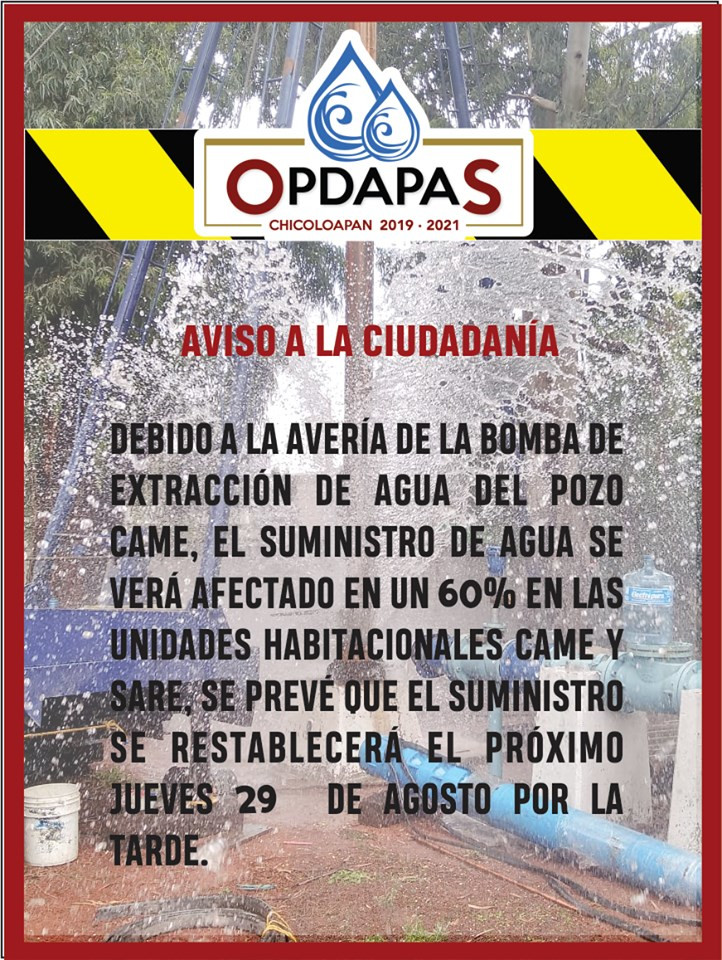 Debido a avería en bomba de extracción, se reduce el suministro de agua