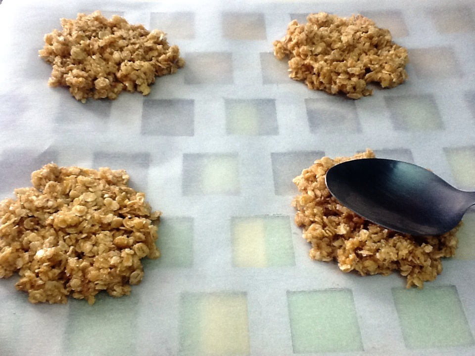 Añade la avena, el bicarbonato y la pizca de sal a la mezcla anterior y combina bien todos los ingredientes. Con ayuda de una cuchara, toma porciones de masa y colócalas en la bandeja, dándoles forma redondeada. Hornea las galletas durante 12-15 minutos, o hasta que estén doradas. Retira del horno y deja enfriar antes de disfrutarlas.