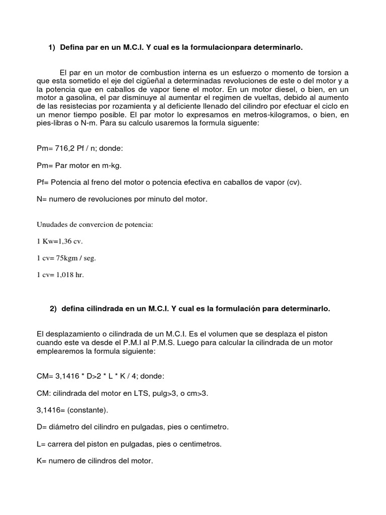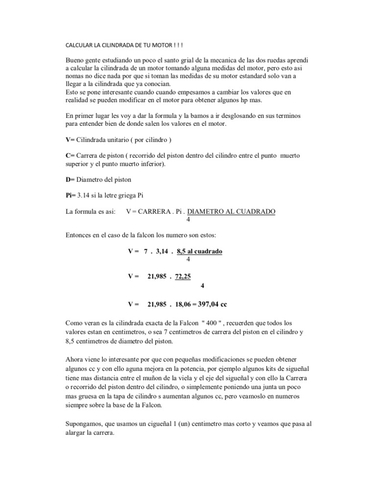 Formula Para Calcular La Cilindrada De Un Motor Reseñas Motor