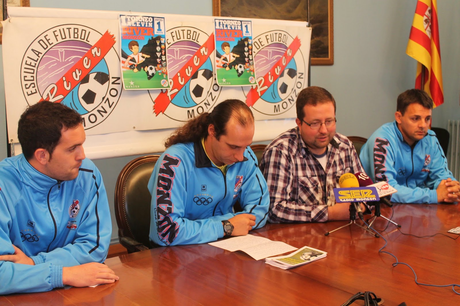 Llega el VII Torneo Alevín de fútbol 7 Templario-Ciudad de Monzón. El alcalde de Monzón, Isaac Claver; el concejal de Deportes, Eliseo Martín; el presidente de la Escuela de Fútbol River Monzón, Juanan Rodríguez; el técnico Fran Puyer; y el director, David Izquierdo, han presentado este torneo que se celebrará el día 1 de mayo en los.