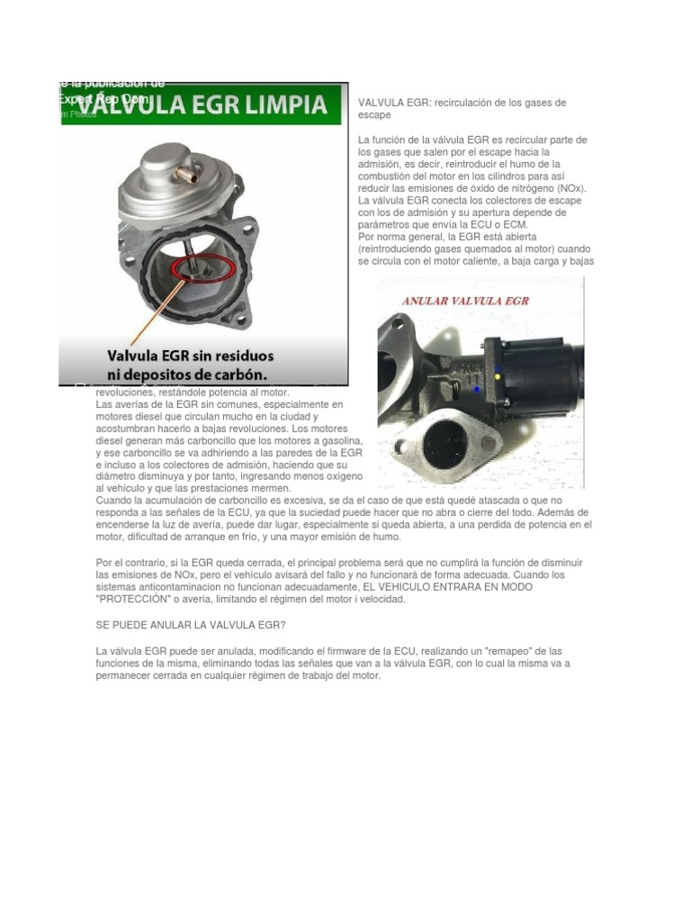 Porque devo ou não anular a válvula EGR. A válvula EGR permite a reutilização de gases, o que, por si só, significa menor poluição para o ambiente e, ao mesmo tempo, permite um consumo menor, ainda que de forma bastante residual. Porém, não podemos esquecer que esses gases são nocivos e, portanto, mesmo depois de todo o processo para.