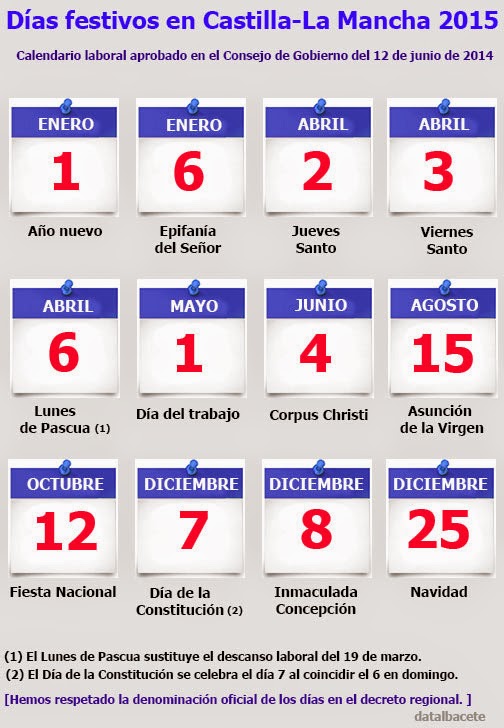 Festivos en CastillaLa Mancha en 2015