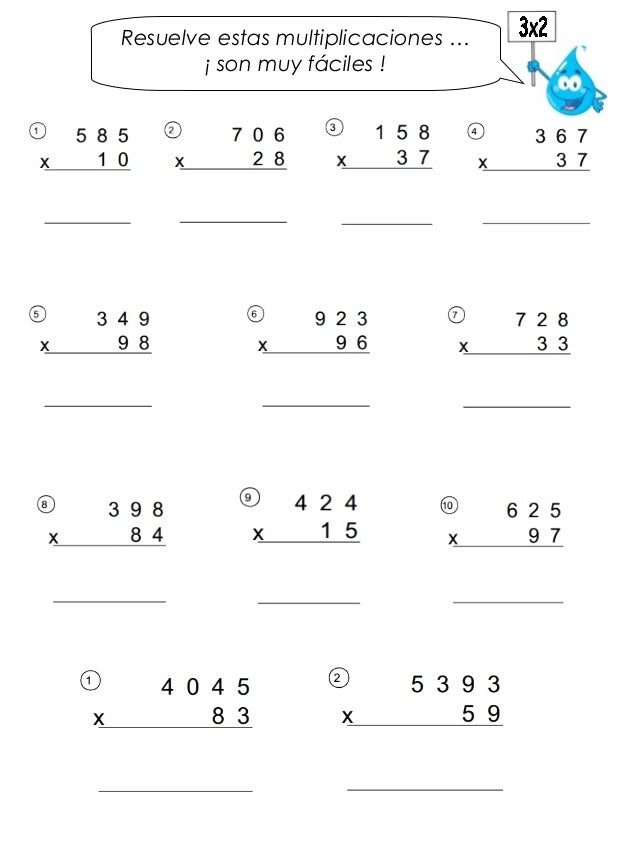 Fichas con ejercicios de multiplicaciones por una cifra para imprimir gratis. Ejercicios de