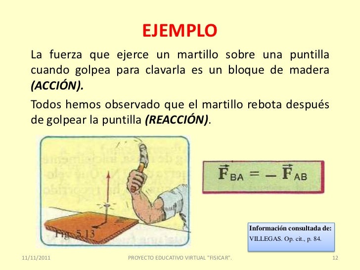 Resolución. La estrategia de resolución consiste en buscar la aceleración a la que se encuentra sometido el conjunto martillo-clavo, y a partir de ella y de la segunda ley de Newton, calcular la fuerza de resistencia de la pared. El conjunto martillo-clavo tiene una velocidad inicial de vo = 6 m/s, y una final de vf = 0, ya que la fuerza que.