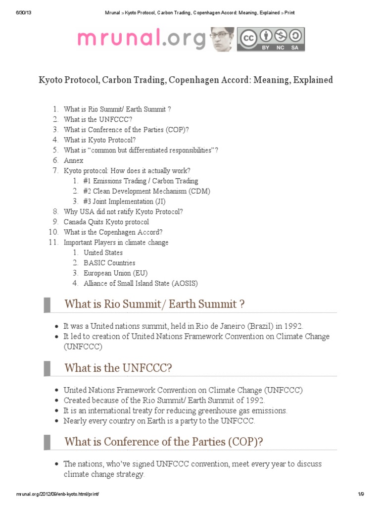 Mrunal » Kyoto Protocol, Carbon Trading, Copenhagen Accord_ Meaning, Explained » Print Kyoto