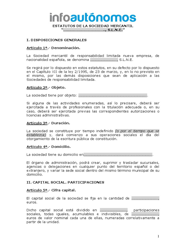 Modelo Estatutos Sociedad Limitada Nueva Empresa PDF