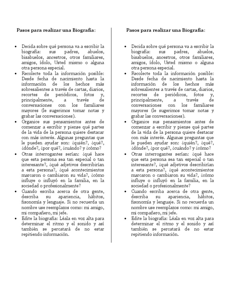 Pasos para realizar una Biografía