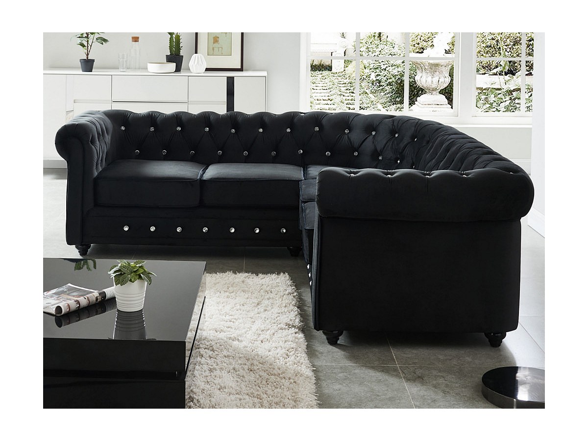 Sofá rinconero terciopelo en color negro CHESTERFIELD