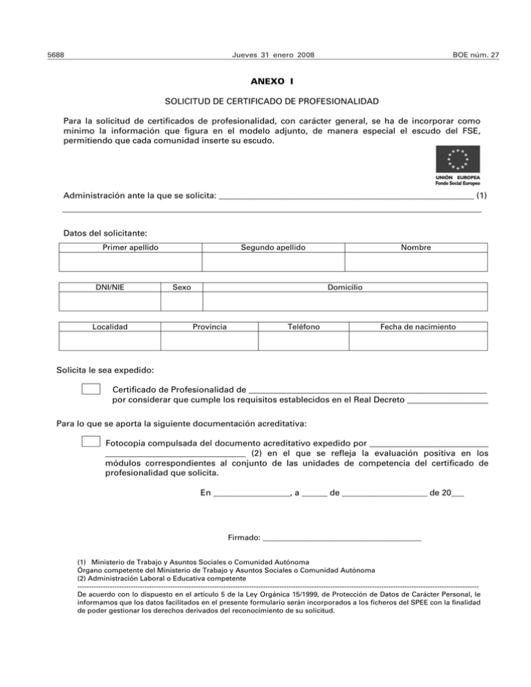Solicitud de Certificado de Profesionalidad