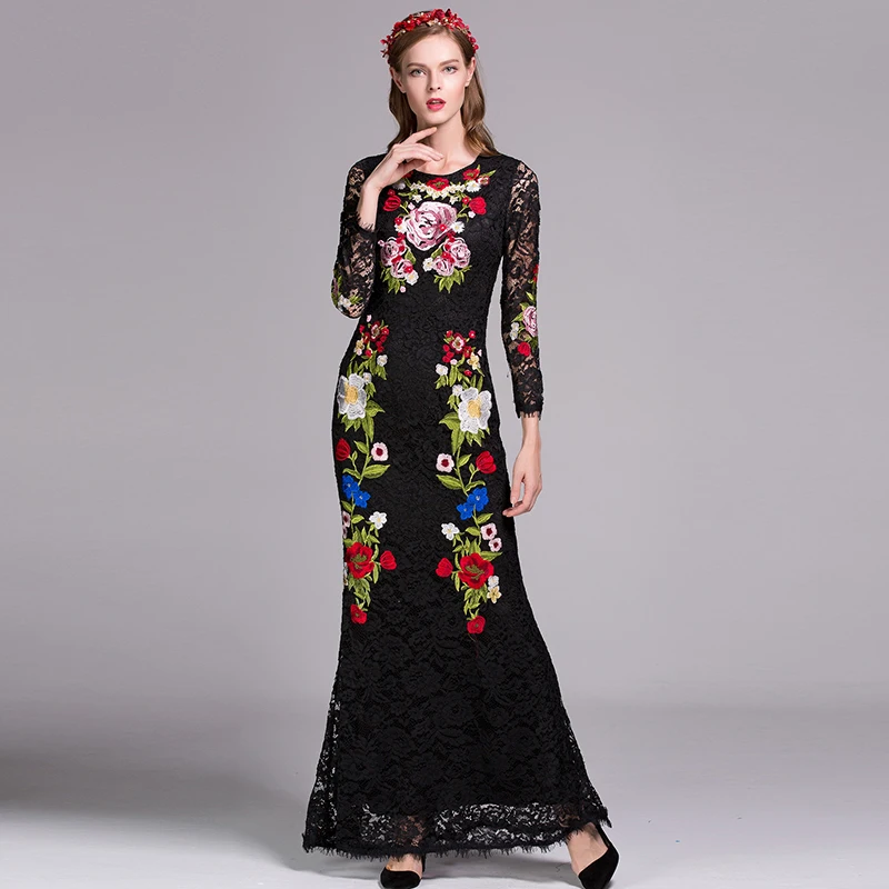 Comprar Nueva marca moda mujer Vestido largo de encaje 2016 alta calidad